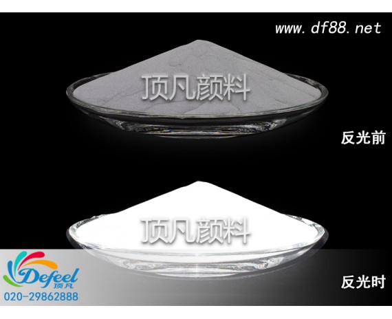 FG25高折射灰色800目反光粉制品采用高折射率玻璃珠后半表面鍍鋁作為后向反射器,具有極強的逆向回歸反射性能,能將95%的光線直接反射回光源處,回歸反射所造成的反光亮度,可使駕駛人員和帶光源的夜間作業人員在夜間或視野不佳的情況不清楚地看見行人和障礙目標,確保雙方安全。