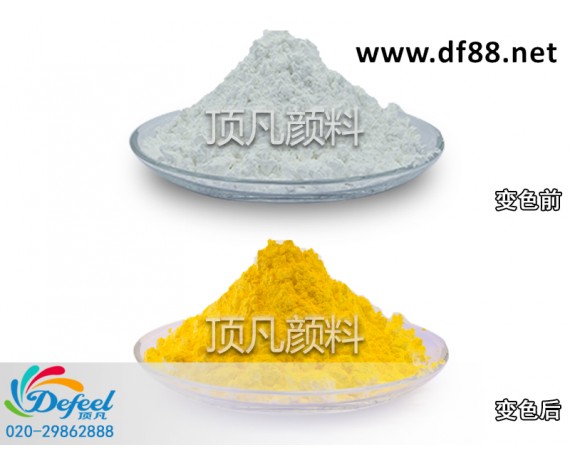 頂凡感光變色粉又稱光變粉、光變顏料、光變色粉等GB002光變黃光變粉其變色原理為吸收特定波長的紫外線光源,藉由該光源之能量而產生顏色變化變為黃色,當特定波長的紫外光源不在時,即恢復原來的白顏色。